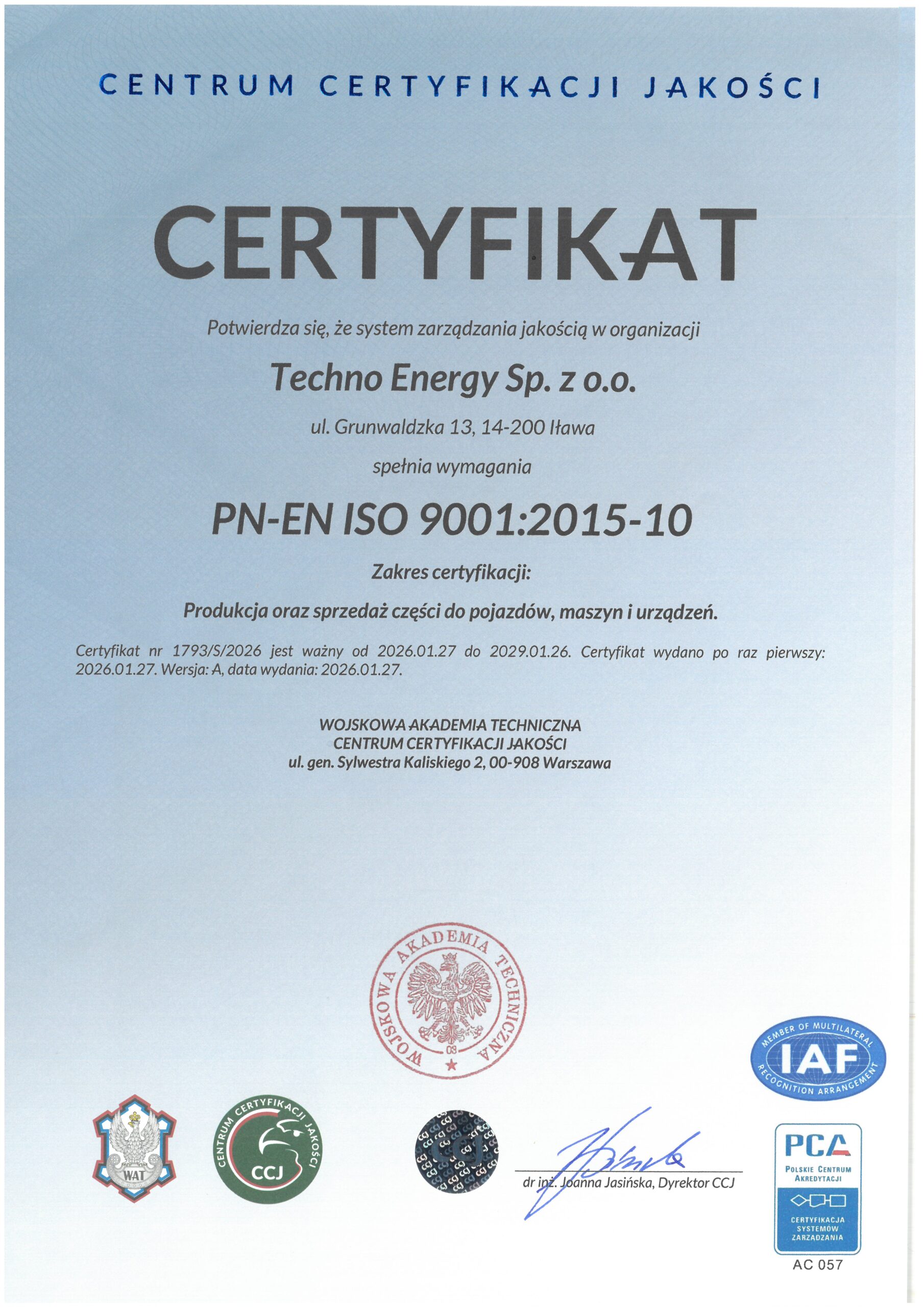 Produkujemy zgodnie z wymaganiami systemu ISO 9001:2015 .